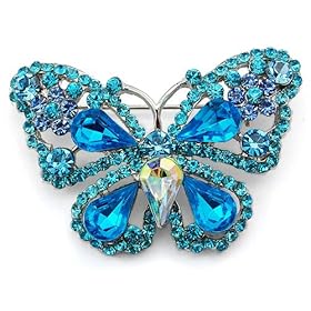 Deep Aqua Blue Sapphire Crystal Rhinestone Fairytale Butterfly Insect Brooch Pin: Jewelry. It will make a great gift or great addition to any collection. Designed on silver toned alloy metal, this gorgeous collectible brooch pin is decorated with genuine rhinestone crystals.