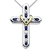 Sapphire Cross Pendant in Sterling Silver, 18 inch Necklace, 1/2ct tgw.: Jewelry. The most common treatment for the enhancement of color is heat treating. Deep blue sapphires and shiny sterling silver make this sterling silver sapphire cross necklace an excellent addition to your pendant wardrobe. 11 beautiful sapphires hand set, and swinging gracefully from an 18 inch sterling silver necklace.Sapphire, a member of the corundum family of gemstones, is generally blue in color, from cornflower blue Ceylon sapphires, to dark blue Australian sapphires, to right royal blue Burmese sapphires, and everything in between. In the heat treating process, rough un-cut sapphires are heated to 1700-1800 degrees Celsius, which improves both color and clarity.