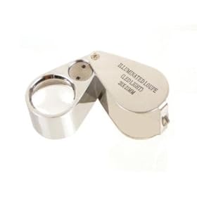 SE Illuminated Loupe with LED Light - 20X: Jewelry. Magnifier Eye Piece is a nice size hand held pocket Loupe. Lighted Loupe Magnifier Inspection Supplies Optical Lens. Illuminated 20X High Powered Magnifying Glass Loupe, with 21MM Diameter Optical Glass Lens. Teardrop loupe has a crystal clear viewing lens, compact folding capability with screw pin holds, On-Off LED slide light switch, battery compartment lock key, slotted end for key chain or chain attachment, silver metal construction, and case included. Requires 3AG7 Batteries (Batteries Are Included.)Inspection magnifiers great for jewelers diamond inspection, Lighted Teardrop loupe also used in geology and biology Inspection magnifiers great for jewelers diamond inspection , Lighted Teardrop loupe also used in geology and biology Labratory lab supplies to research inspect mineral , plant , and insect identification.