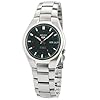 Seiko Mens SGEF01P1 Black Dial Stainless Steel Watch: Seiko: Watches. The dial features silver-toned hands and baton hour markers. Featuring a minimalist design with classic analog style, the Seiko Men's Black Dial Stainless Steel Watch is ready to complement a three-button suit for an important board meeting or a short-sleeve chino on your favorite golf course. The watch's stainless steel link bracelet (which closes with a fold-over double-push-button safety clasp) provides contrast for the watch's black dial. Backed by a stainless steel case and protected by a mineral Hardlex crystal, the watch's black dial also features a date window at the three o'clock position.