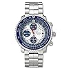 Seiko Mens SNA411 Flight Alarm Chronograph Watch: Seiko: Watches. The watch is presented on a stainless steel link bracelet that fastens with fold-over push button clasp. Whether you’re a pilot or you simply want a high-performance, features-packed timepiece, this flight chronograph watch is sure to please. It has a round black dial, with luminous markers and large luminous hands, set in a coin-edged stainless steel bezel. The watch features a date window at the three o’clock position and three sub-dials. Its stopwatch feature can measure up to sixty minutes in 1/5-second increments. The alarm, a two-hand sub-dial, can be set on a twelve-hour basis, and it doubles as an international travel clock since the alarm hands can be set to indicate the time in a different time zone. This watch also has a bi-directional rotating slide rule bezel for performing many types of calculations. Other features include a scratch-resistant curved Hardlex crystal and a screw-down crown and caseback. Water-tested to 200 meters, the watch is suitable for skin diving.