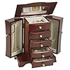 Walnut Jewelry Box Armoire: Home & Kitchen. Such compartments are ideal for showcasing new or special pieces to guests and for keeping earring partners together! Tired of tangled necklaces and bracelets? Open Kira Sol's wings to expose the handy necklace hooks on either side of the six spacious drawers.Kira Sol wooden jewelry boxes have been created with security, as well as aesthetics in mind. The Kira Sol inch Locking Jewelry Box in Walnut Finish is one of the most stunning wooden jewelry boxes available. Capturing the classic beauty of wood, Kira Sol is luxurious, elegant, and wonderfully tantalizing. If you can't resist the rich tones of a walnut finish, and you're looking for a spectacular jewelry showcase, Kira Sol will serve your needs perfectly. To compliment her electrifying exterior, Kira Sol's creators have added a sumptuous, silky lining to her countless compartments. This lining will protect the integrity and finish of your treasured pieces, and like all our wooden jewelry boxes, Kira Sol will last a lifetime.A cleverly concealed looking glass can be found under Kira Sol's inch lid. It will create joyful little rainbows in your bedroom if you place dazzling rings and earrings in the top compartments. Each box comes complete with a sturdy lock, which will keep your treasures safe both in your home and on your travels.