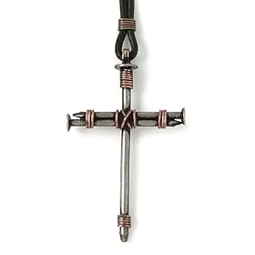 Bob Siemon Nail and Copper Wire Cross Pendant on Leather Cord, 30: Jewelry. Constructed of stainless steel nails bound together by copper wiring, this striking 2-by-1.5-inch religious symbol represents Jesus's nailing on the cross for the sins of humanity. Harness the power of the Son of God with this nail-and-copper-wire cross pendant crafted by Bob Siemon.