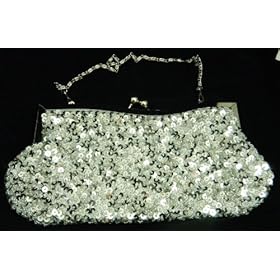 Silver Color Beaded Handbag with Sequins - Handmade Evening Purse: Everything Else. The bag has a clasp to securely hold your belongings. This chic classic style purse is adorned with hand sewn beads and sequins. Satin lining inside.