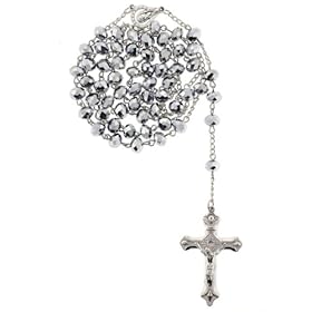 Silver Crystal Rosary with Faceted Rondell Beads in 8x6mm - 28 inch Necklace - 21 inch Overall Length: Jewelry. Silver Crystal Rosary with Faceted Rondell Beads in 8x6mm - 28'' Necklace - 21'' Overall Length.