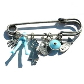 Silver Plated Evil Eye Protection Charms Baby Pin: Jewelry. A silver plated Baby Boy Blue Safety Pin with protection charms.