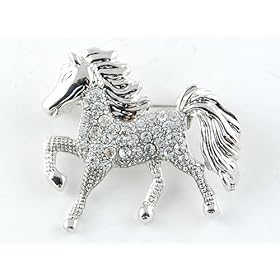 Silver Tone Running Horse Pony Race Brooch Crystal Rhinestone Custom Jewelry Pin: Jewelry. Designed on silver toned alloy metal this lovely animal brooch pin is generously decorated with clear rhinestone crystals.