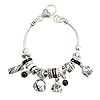 Silver Gold Toned Cross Theme Charm Bracelet Fashion Jewelry: Jewelry. It has four dangling heart charms and several other neat charms that include a cross that has only one inch written on it, a cross with a heart in it, a Fleur Di Les symbol, and more! Has a lobster claw clasp decorated with a heart and will fit up to an 8 inch wrist comfortably. Here is a beautiful silver and gold toned cross theme charm bracelet. Your bracelet will come to you in a foil gift box perfect for gift giving.