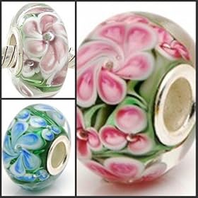3 Flower Sisters Hawaii Garden .925 Stamped Solid Sterling Silver Core Murano Glass Beads Charms: Jewelry. All beads are brand new. The grass is always greener and the flowers always prettier on the other side. This bead has a .925 sterling silver core, and is suitable for 3mm Cable European Charm Bracelets. It is interchangeable with other European bead charms, and is compatible with Pandora, Troll, Chamilia, Biagi & other styles of European bracelets. Quality beads sell at wholesale price. We will ship as pictured (no duplicates). Hole size is approximately 4.5mm, dimension of beads are approximately 14mm by 7mm (As they are all handmade there may be a slight difference in color or size).