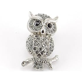 Owl Bird Perch Branch Sitting Genuine Crystal Rhinestone Fashionable Brooch Pin: Jewelry. Designed on silver toned alloy metal this animal bird brooch pin is decorated with blck diamond colored rhinestones.