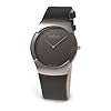 Skagen Mens 584LSLM Swiss Black Leather Watch: Skagen: Watches. A smooth, black Italian leather wristband seamlessly meets the sleek, polished, stainless steel case and bezel that taper to focus the eye on the exquisitely minimal dark gray dial. The stark simplicity and elegance of Skagen's Swiss Black Leather Watch makes it an eye-catching work of art for the wrist. Subtle, silver-toned indexes at the six and 12 o'clock positions draw attention to the slender hour and minute hands for an overall svelte, polished look.