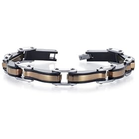 Smooth and Stylish: Mens Rose Plated Stainless Steel and Black Ceramic Link Bracelet: peora: Jewelry. Includes a Designer Gift Box. Innovation and creative engineering bring the strength of Stainless steel and magnificence of Ceramic together in this outstanding one-of-a-kind piece. Any occasion and every ensemble will get a dash of fresh style when you wear this seasons must have. The links are two toned with black ceramic and Rose colored Ion Plated Stainless Steel in a rounded wave shape. The easy-to-wear fold-over clasp completes the look with a secure and comfortable fit. The bracelet measures 8 1/4 inches in length and is approximately 1/2 inch in width. Perfect for Christmas, Birthday, Fathers Day, Graduation Gift or for just about any occasion.