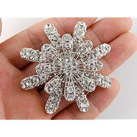 Gerber Daisy Snowflake Holiday Festive White Diamond Inspired Flower Brooch Pin: Jewelry. The clear color of the rhinestones make it easy to match with any outfit. Designed on silver toned alloy metal this floral brooch pin is one of a kind and will go great with any occasion.
