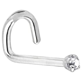 Solid 14KT White Gold 1.5mm Genuine Diamond Left Nostril Screw- 20 Gauge: Jewelry. Made in USA factory direct. Genuine diamond nose ring. Artisan handmade 20 gauge 14kt white gold nostril screw with a 1.5mm prong set genuine diamond. Nickel Free gold body jewelry..