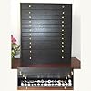 Southern Enterprises Cherry Jewelry Armoire: Home & Kitchen. Along the bottom, two drawers provide ample storage room for larger items. Dimensions: 16 W x 11 D x 44.5 H Finish: Cherry Material: Solid Wood Legs / MDF with Veneer / PB with Veneer Cherry Finish Jewelry Organizer Storage Armoire If you are looking for a way to organize your large jewelry collection in style, this rich cherry jewelry armoire is the solution. Lift the top to reveal a large mirror, perfect for accessorizing. The top section swings open to reveal racks to hang 50 pairs of earrings on each door and 10 flat hooks capable of holding multiple necklaces or bracelets. The open tray below the hooks has a variety of storage dividers and a large section filled with ring holders. The middle section opens to reveal 6 hooks on each side and 5 felt lined drawers with assorted dividers for all of your miscellaneous jewelry. Easily assembled, attaching the legs and top lid are all that is required before use. Earrings: 200 pieces; 100 pairs Hooks: 22 Rings: 5 slots; each slot holds multiple rings Sections: Top drawer has 6 equally divided sections.
