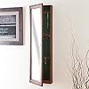 Southern Enterprises VM5064 WallMount Mirror Jewelry Armoire: Home & Kitchen. The mirror is not locked when it ships, but is packed so it doesn't open during shipping. Finish:Plantation Oak Beveled mirror Inner felt lining Small removable storage tray with 4 sections for smaller items Keyed locking mechanism to make sure all of your valuables are safe and secure 5 double hooks at the top perfect for storing necklace and bracelet sets Two rows of 11 flat hooks capable of holding several necklaces each On the inside top of the door, there are 9 rows of ring holders measuring 7.75'W each Three rows for storing earrings, with 12 notches on each row to help separate or secure earrings Each notch is capable of holding a set of earrings Below the earring storage on the door there are 10 single necklace/bracelet hooks Note: The key for the lock comes inside the mirror.