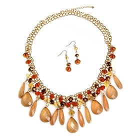 Sparkling Topaz Stone Statement Necklace and Earrings Set Fashion Jewelry: Jewelry. Topaz color stones on a goldtone link chain with matching small drop earrings. This is a beautiful 20 inch necklace with lots of sparkle that will really give you a finishing look to your outfit. Your necklace and earrings set will come to you in a foil gift box great for gift giving.