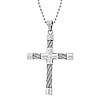 Mens Stainless Steel with Carbon Fiber Detail Cross Pendant Necklace, 24