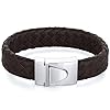Stainless Steel and Brown Leather Braided Bracelet 8 1/2 inch 11.5mm in width: Jewelry