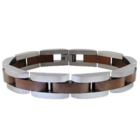 Mens Stainless Steel Bracelet with Brown Plating, 8.5: Jewelry. This is a handsome accessory that will complement both casual and dressy attire. Curved bar links of silvertone and brown-plated stainless steel compose this men's bracelet.
