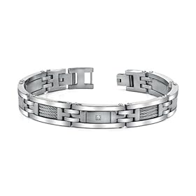 Mens Stainless Steel Bracelet with twisted cable highlight: Peora: Jewelry. Length = 81/2 inches + ? inch extender, Width = 1/2 inches. Features: Twisted Cable highlight, Cubic Zirconia Accenets, Matte Finish, Rugged Stainless Steel Construction. Includes Gift Box.