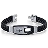Mens Stainless Steel and Braided Leather Cross Motif Bracelet: Peora: Jewelry. The Cross motif measures 5/8 inch at widest point. The ultimate in contemporary styling, this black and silver-toned bracelet is sure to make you stand out from the crowd. A uniquely striking and edgy Cross motif is crafted in contrasting brushed and polished Stainless Steel and is complimented by a black braided leather band. Whether worn with a plain white tee or a dressy button-up, ?this bracelet is sure to add an edgy and energetic flair to every outfit. The easy-to-wear Fold-over Clasp completes the look with a secure and comfortable fit. The bracelet measures 8 1/2 inches in length and approximately 3/8 inch width. ?Includes a Designer Gift Box.