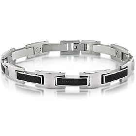 Mens Stainless Steel and Carbon Fiber Magnetic Bracelet 8 3/4 inch: Jewelry. Mens stylish stainless and carbon fiber bracelet, measuring 8 3/4 inches long.