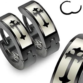 316L Stainless Steel Black Hinged Snap inch Huggie Earrings with Gothic Medieval Cross Print - 14mm Length, 4mm Width - Sold as a Pair: Jewelry. 316L Stainless Steel Black Hinged Snap inch Huggie Earrings with Gothic Medieval Cross Print - 14mm Length, 4mm Width - Sold as a Pair.