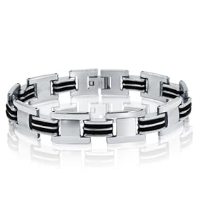 Stainless Steel with Black Rubber Mens Chain Link Bracelet 8 1/2inches: Jewelry. Mens Classic Stainless Steel and Black Rubber Bracelet.