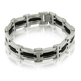 Mens Stainless Steel and Black Rubber Link Bracelet 8 1/2 inches: Jewelry. Mens stylish stainless and carbon fiber bracelet, measuring 8 3/4 inches long.