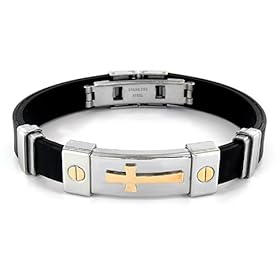 Stainless Steel and Black Rubber Bracelet With Gold Plated Cross: West Coast Jewelry: Jewelry. Stainless Steel and Black Rubber Bracelet With Gold Plated Cross.
