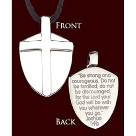 Stainless Steel Shield of Faith: Everything Else. 1 1/2 inch Polished Stainless Steel with passage Be Strong and Courageous.