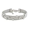 Stainless Steel and Sterling Silver 0.01 CT TDW Heart Diamond Black Cable Bangle: Jewelry.