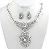 Silver Plated Fleur De Lis Statement Necklace and Earrings Set Fashion Jewelry: Jewelry. This classy piece features a large fleur de lis pendant with sparkling crystals. This is an incredible silver plated fleur de lis necklace and earrings set. You'll love the intricate design on both the necklace and the earrings! Your necklace and earrings set will come to you in a foil gift box great for gift giving.