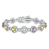 Sterling Silver 7.37ct. TGW Multi Color Gemstone and Diamond Accent Half Bezel Set Tennis Bracelet: Jewelry. One single diamond is set in the midst of the pave design. This glamorous tennis bracelet features half bezel set amethyst, blue topaz, citrine, garnet and peridot gemstones bordered by pave pattern frame.