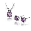 Sterling Silver 3.25ct Amethyst & Diamond Accent Teardrop Necklace Earrings Set: Jewelry. The pendant dangles from an 18-inch rolo chain and the earrings are secured by post and friction backs. This beautiful jewelry set showcases an amethyst teardrop pendant with a pair of matching stud earrings. The pendant features a sparkling amethyst stone, prong set with a silver dotted border. One genuine diamond is nestled within the design. The stud earrings feature 4mm round amethyst stones set into snap-in settings. The entire set is crafted of sterling silver.