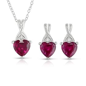 Sterling Silver Created Ruby and Diamond Heart Earring and Pendant Set, 18: Jewelry. A bright heart-shaped created ruby stones sit in a twisting basket of 925 sterling silver. A colorful gemstone set that models her feminine style, the Sterling Silver Created Ruby and Diamond Heart Earring and Pendant Set makes a wonderful gift. Touched right above is a small natural round diamond for an extra touch of sparkle along an 18-inch cable chain.
