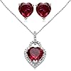 Sterling Silver Created Ruby and Diamond Heart Earring and Pendant Set, 18: Jewelry