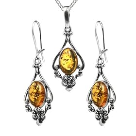 Honey Amber and Sterling Silver Dangling Style Filigree Pendant and Earrings Set, 18: Ian and Valeri Co.: Jewelry. 60 million years old honey amber is the fossilized resin from ancient forests.