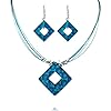 Sterling Silver Dichroic Glass Green with Blue Highlight Flat Round Bead Necklace and Earrings Set, 18: Jewelry