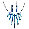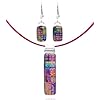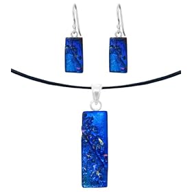Sterling Silver Dichroic Glass Blue with Clear Glass Sprinkles Rectangular Pendant and Earrings Set, 18: Jewelry.