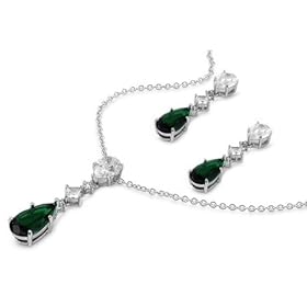 Sterling Silver & Emerald CZ Round Tear Drop Diamond Shape Combination Earring & Necklace Set