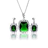 Sterling Silver & Emerald CZ Round Stone Over Diamond Shape Earring & Necklace Set
