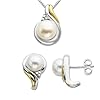 Sterling Silver Freshwater Cultured Pearl Earrings and Pendant Set: Jewelry. The pendant features an elongated-shaped pearl that hangs from an ornate setting. Showcase the natural beauty of the freshwater pearl with the Sterling Silver Freshwater Cultured Pearl Earrings and Pendant Set. A round-shaped freshwater pearl forms the unique link between the pendant and the box-style chain that it rests on. This elegant look is matched on the friction-style back stud earrings.