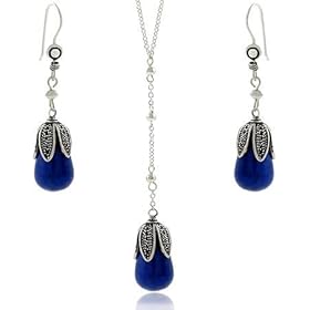 Sterling Silver .925 Genuine Lapis Stone Leaf Petal Bead Dangle Hook Earrings & Y Necklace 18.5-19.5 Jewelry Set: Jewelry. Natural beauty and vibrant colors have brought genuine stones to the forefront of fashion.
