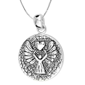 Sterling Silver Guardian Angel Protect Me Wherever I Go And Keep Me From Harm inch Reversible Pendant with Angel, 18: Jewelry. The small round pendant features a polished silver angel and heart against an etched background. Show how much you care with this comforting guardian angel pendant, beautifully rendered in 925 sterling silver. The reverse side is inscribed with a prayer of protection.