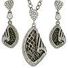 Sterling Silver Infinity Drop Pearl Gemstone Necklace Earring 2-piece Jewelry Set Bucasi: Jewelry. Perfect gift and never go out of style. Timeless design is the best way to describles this twisting Infinity inch drop necklace with matching dangle earrings. The sterling silver pendant is highlighted with a black pearl, purple and golden gemstone and hung on a sterling silver .925 link chain 16 inch with 2 inch extender. The dangle 1.5 inch matching earrings offer the same three graduating oval twisted links that leads to a black pearl with a fishhook backing. The necklace and earring set is rhodium plated ensuring that this piece will never tarnish or change color. Presented in a gift box.