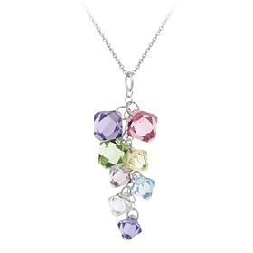 Sterling Silver Multi-Colored Swarovski Elements Linear Drop Pendant with Rolo Chain, 18: Jewelry. The beautiful rainbow colors make this a piece that pairs easily with so many outfits. Sparkling bicone beads of multi-color Swarovski crystal are clustered along a sterling silver chain to create this alluring drop pendant.