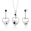 Sterling Silver Rhodium Finish Multishape Sapphire Pendant Earrings and 18 inch Necklace Set: Peora