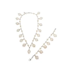 Sterling Silver Necklace and Bracelet Set Featuring Light Colored Glass Stones: Jewelry. Light colored stones joined together by a Sterling silver rolo chain define this set that includes a 16 inch necklace and 7-1/2 inch bracelet with lobster claw clasps.